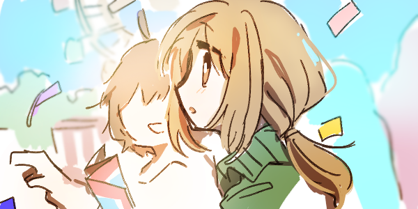 ふたりの子供はチケットを握りしめ、遊びまわった。